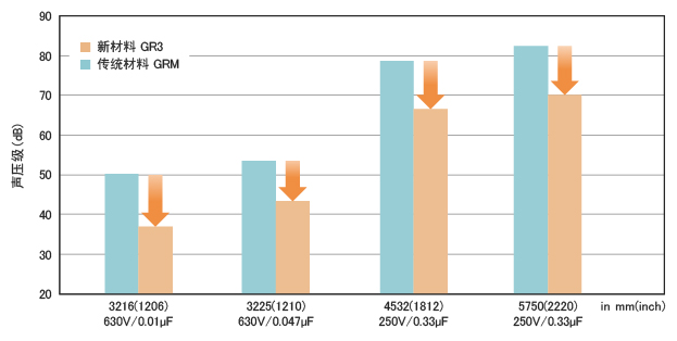 村田陶瓷电容器GR3系列具有降低设备啸叫的特性。通过使用新型电介质材料,这些电容器能够有效减少啸叫,从而提高产品的整体性能。