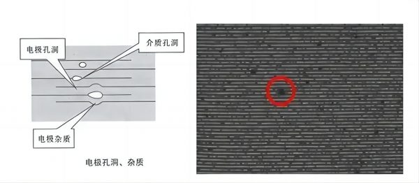 - 陶瓷粉料内的有机或无机的污染,以及烧结过程中火候控制不当,会导致电容内部形成空洞,从而产生漏电。漏电会导致器件内部发热,降低陶磁介质的结缘性能,从而导致漏电增加,该过程循环发生不断恶化,严重时导致多层陶瓷电容开裂、爆炸甚至燃烧等严重后果。