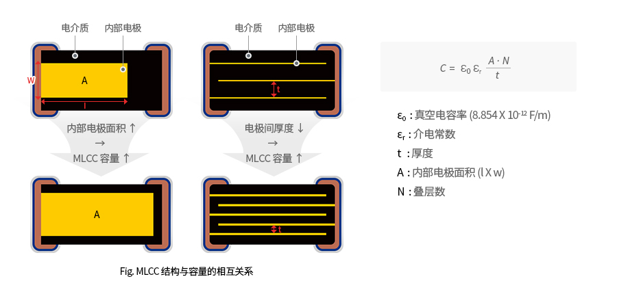 然而,还有一个常常被大家忽视的因素,那就是电介质的厚度。与前面几个参数不同,电介质厚度与容量之间是呈反比关系的。简单来说,就是电介质越薄,贴片电容的容量就会越高。