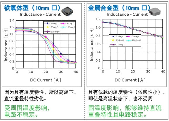 温度稳定性:金属合金材料的另一个显著特点是其透磁率随周围温度的变化非常小。这意味着金属合金电感器在不同温度下都能保持稳定的直流重叠特性,非常适合用于高温环境下的电路。
