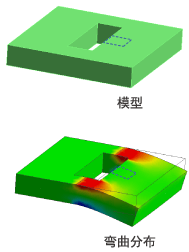然而,当在电路板裂口处设置一个缺口时(如下图所示),情况发生了显著变化。分析结果显示,装配零件的位置呈现为绿色,表明电路板几乎没有产生弯曲。因此,施加在电容器上的压力得以显著降低,从而有效避免了开裂的风险。