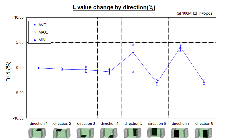 图1展示了不同安装方向下电感值变化率的示例,进一步强调了方向标记的重要性。
