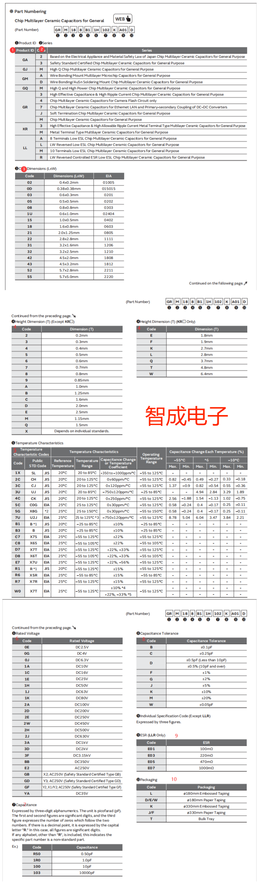 村田贴片电容型号一共分为10个部分详情见图一